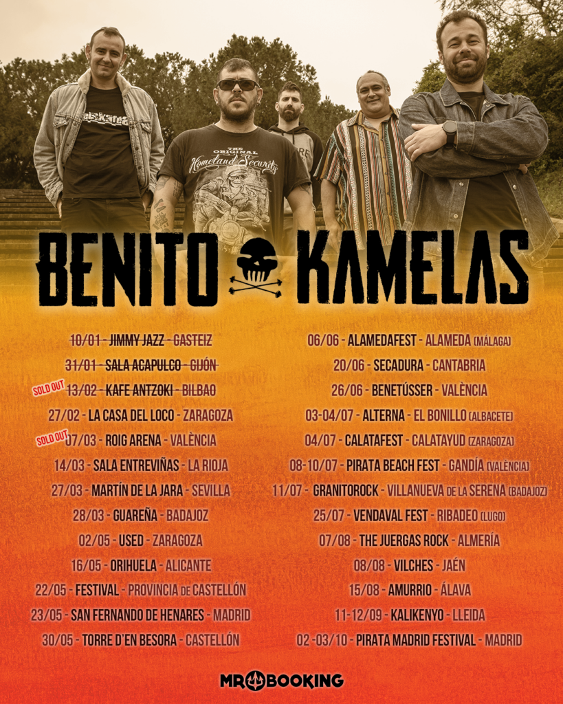 BENITO KAMELAS se prepara para las nuevas fechas de su gira 2026. La banda ya cuenta con 26 fechas confirmadas para este año alrededor de España; actualmente han agotado el concierto en el Roig Arena de Valencia.